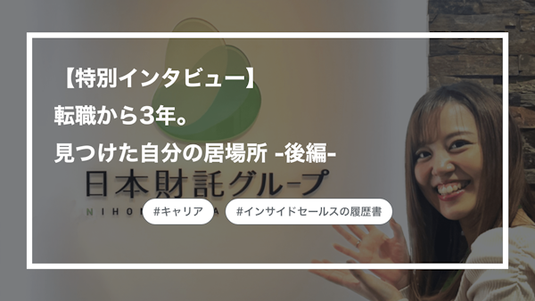 インサイドセールスから他職種へのキャリアへ進まれた方へのインタビューを通じて、これからインサイドセールスという職種を選ぶ方や現在インサイドセールスに取り組んでいる方に向けて3年後・5年後のキャリアを考えるきっかけをつくる「インサイドセールスの履歴書」。 今回は株式会社日本財託の及川瑞生さんに、トップパフォーマーとしてのプレッシャーや、乗り越え方についてお伺いしました。とくに後編は「トップパフォーマーとしての苦悩や、どうやって乗りこえたのか」をお話いただきます。