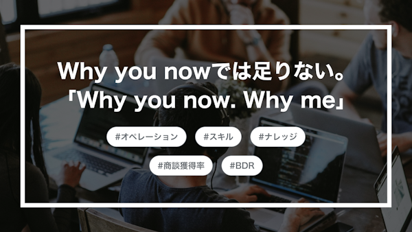 エンタープライズBDRの効果も上げ、自身のビジネスの土台も大きくすることができる「Why me」に是非取り組んでみてください。
