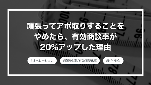 事業の立ち上げ間もない時期は、様々な検証のためにアポ設定数を目標におくことも重要だと思います。実際弊社でも、その時期があったらからこそ最適な条件や行動が設定できるようになりました。