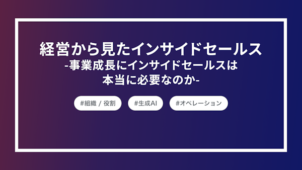 本記事はインサイドセールスカンファレンス2024の基調講演を記事化したものです。当日はオフレコセッションとして開催しましたが、登壇者各社の許可を得て公開しております。経営視点から見た、インサイドセールスとは、そしてその未来の形とは。これから設計する方も、すでにインサイドセールス組織が存在する企業の方もぜひ最後までご覧ください。